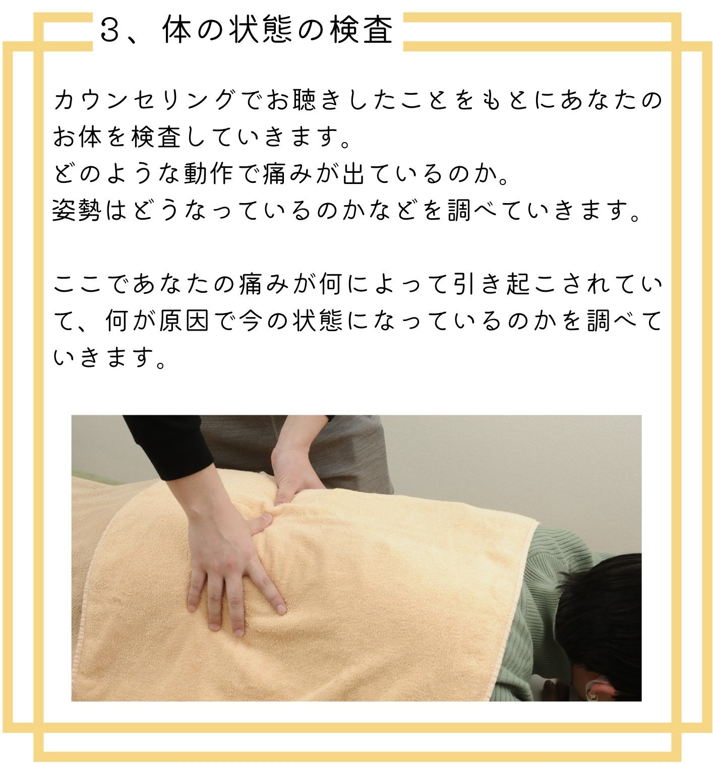 姿勢を良くしたくて通い始めました!最初緊張してたのですが、先生がすごくお話しやすくて緊張も解けて、通うのが楽しくなりました^^