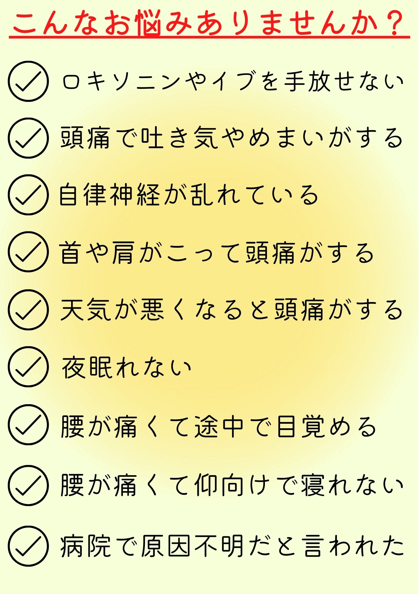 曇りや雨の日の頭痛は「こういう体質なんだ」と諦めていたのですが、主人の薦めもあり行ってみました。
