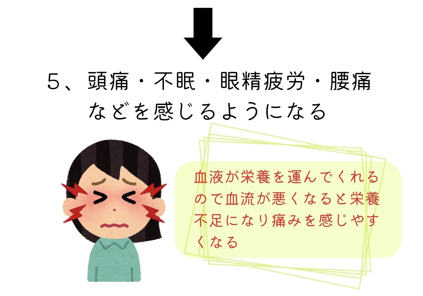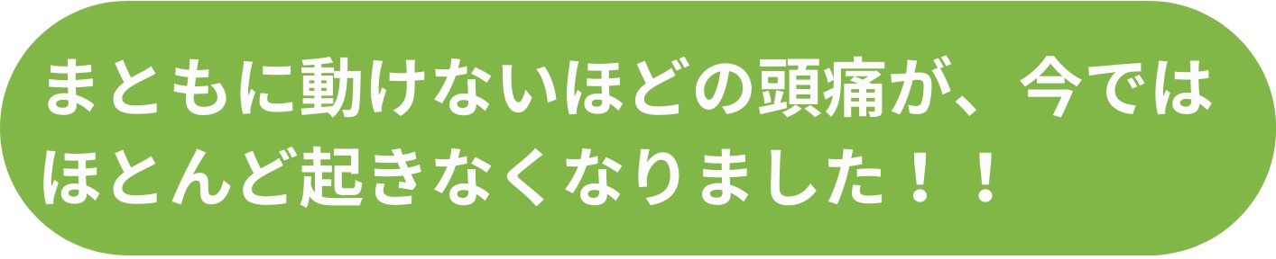 長年頭痛に悩まされて来ました。数ヶ月に一度の頻度で、頭痛が起きると3日ぐらいまともに動けなくなり、家事や育児に支障をきたす程でしたが、こちらに通うようになってほとんど頭痛が起きなくなりました。