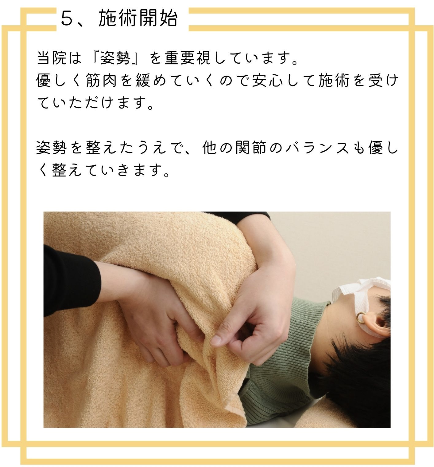 仕事が長時間のデスクワークなのと、もとから姿勢が悪かったのもあり、通院当初は全身が張っていて浮腫んでおり、血流も悪いような状態でした。
