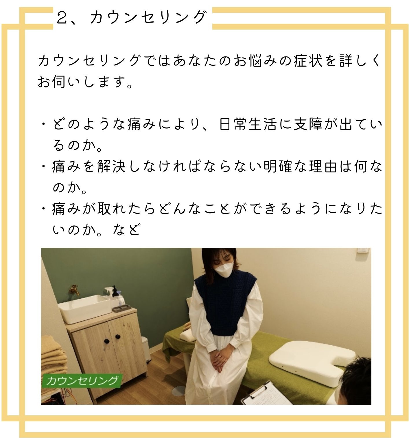 今年の正月早々に腰痛で歩けなくなり、家に近く前から気になっていたので、すがる気持ちで訪問しました。