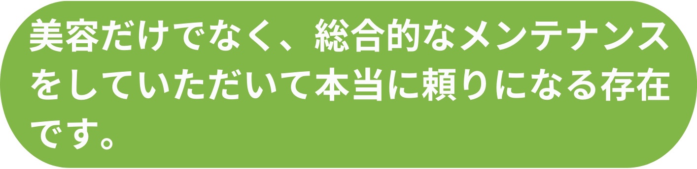とても満足しています。通っている人から勧められてこちらにお邪魔しました。お肌の調子ももちろんですが、頭の凝りも解消してくれて、首の凝りも楽になり、美容だけでなく総合的なメンテナンスをしていただいていて本当に頼りになる存在です。これからも続けて通わせていただくつもりです!宜しくお願い致します。